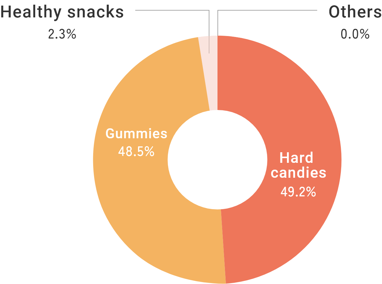 In terms of domestic sales, we hold the largest share of the candy market*1 and the largest share of the hard candy market*2 and the second largest share of the gummy market*3. Our focus is now on further increasing the market share of our existing mainstay brands, as well as boosting sales and profits.