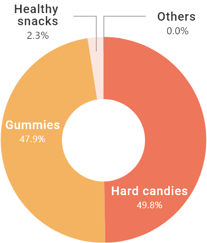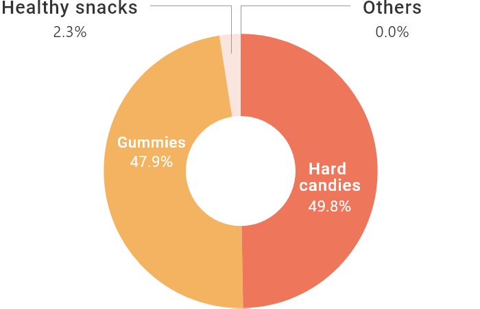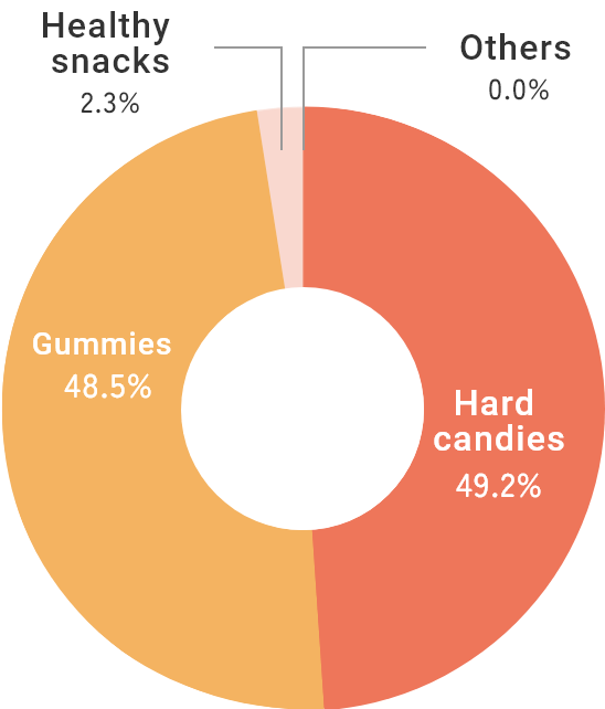 In terms of domestic sales, we hold the largest share of the candy market*1 and the largest share of the hard candy market*2 and the second largest share of the gummy market*3. Our focus is now on further increasing the market share of our existing mainstay brands, as well as boosting sales and profits.