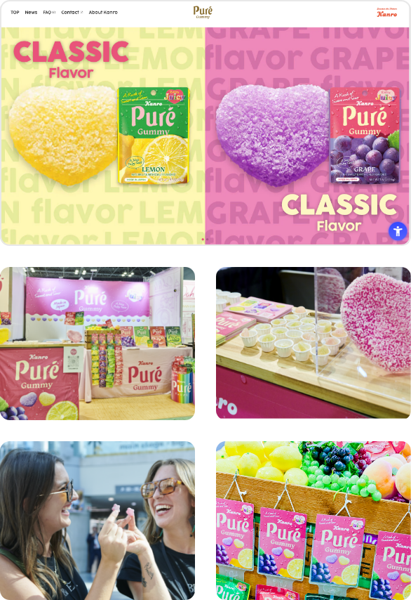 The marketing departments and the brand development departments have joined forces, fostering and strengthening existing mainstay brands, including Kanro Ame, Kin no Milk, Kenko Nodoame, Sugar-Free, Puré Gummy, and Candemina.