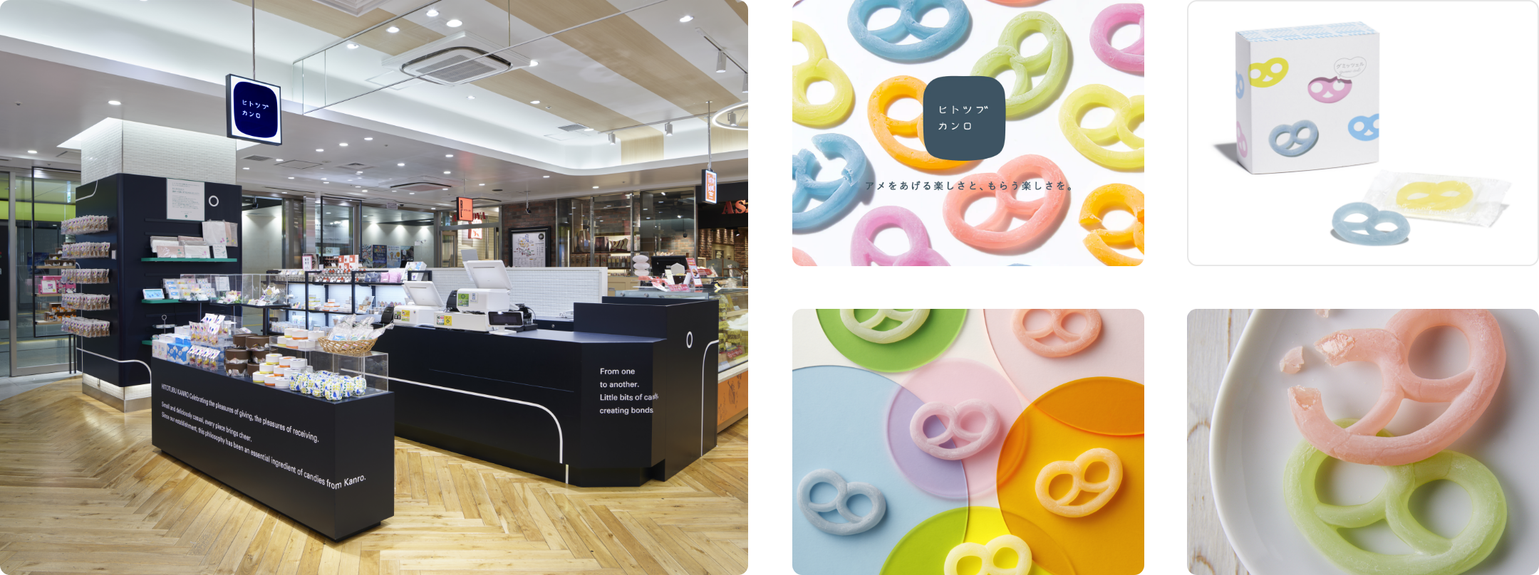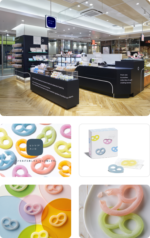We manage HITOTUBU KANRO stores, which are directly overseen by the company, and are developing HITOTUBU KANRO products, including Gummi-tzels and mofuwa.