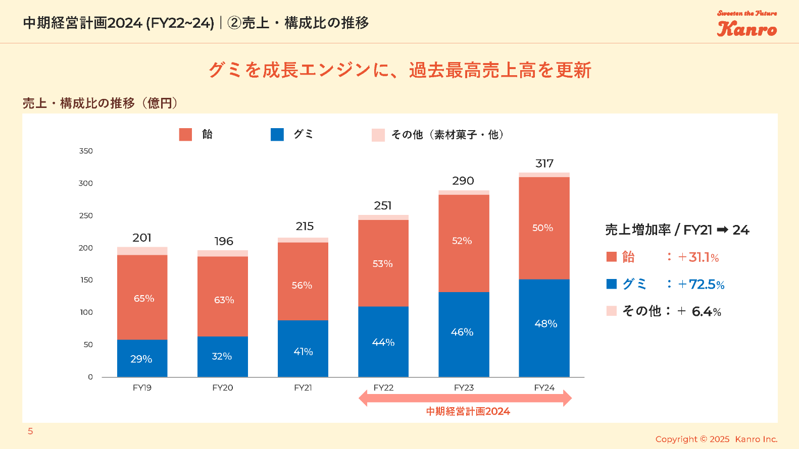 グミを成長エンジンに、過去最高売上高を更新