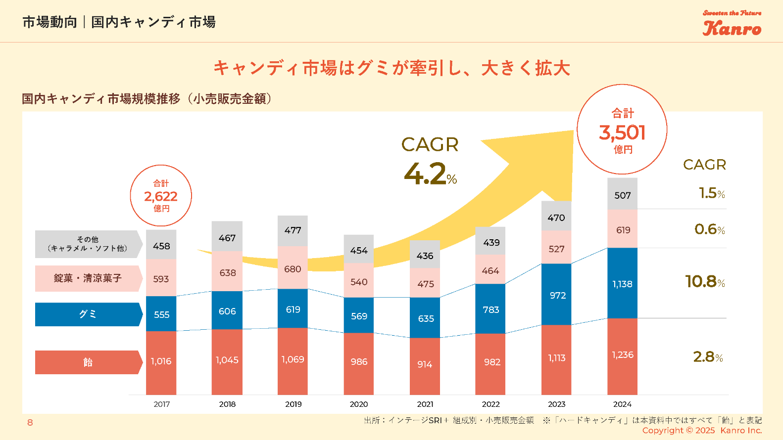 グミの販売数量増加が最大の成長ドライバー