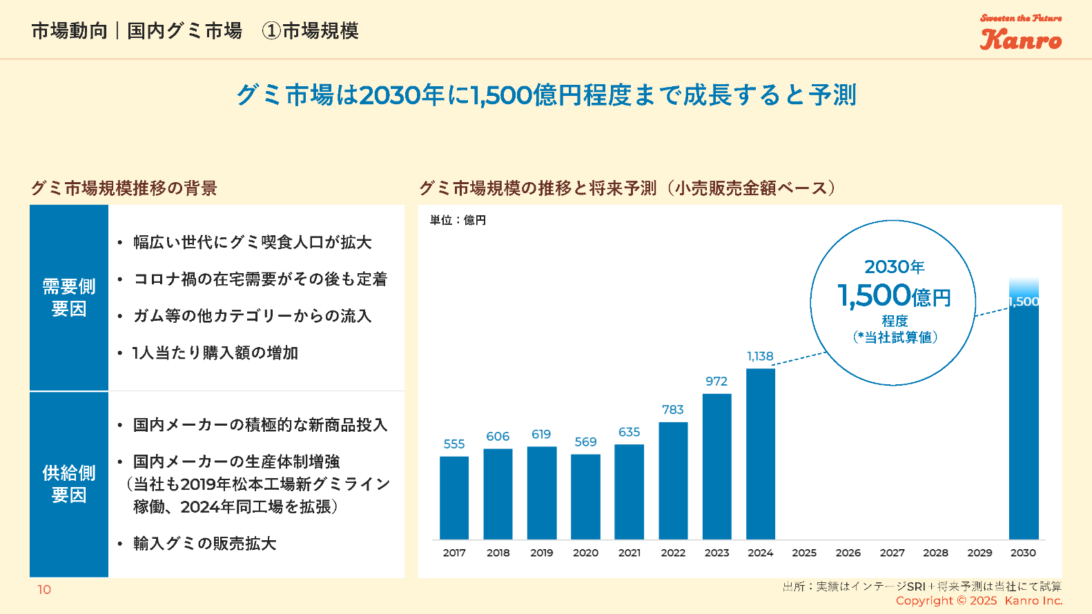 グミ市場は2030年に1,500億円程度まで成長すると予測
