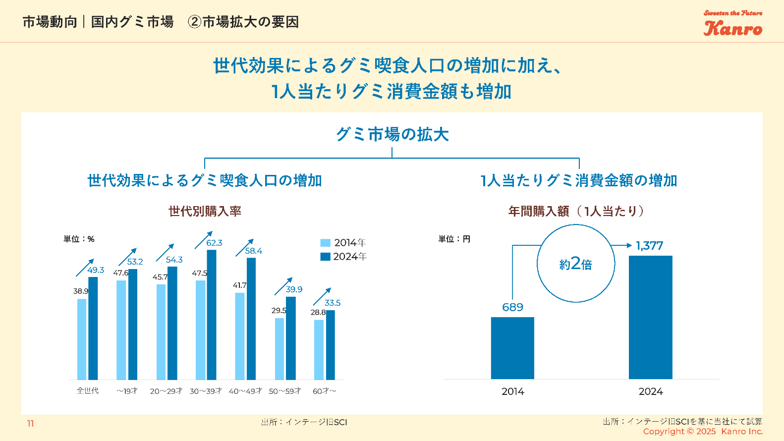 世代効果によるグミ喫食人口の増加に加え、1人当たりグミ消費金額も増加