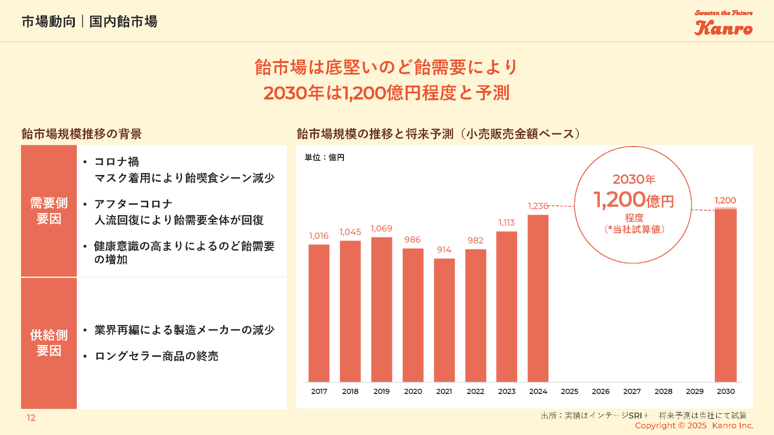 飴市場は底堅いのど飴需要により2030年は1,200億円程度と予測