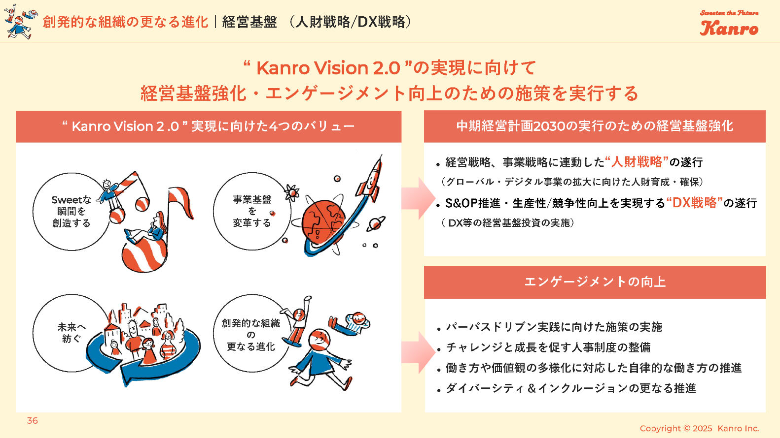 “ Kanro Vision 2.0 ”の実現に向けて経営基盤強化・エンゲージメント向上のための施策を実行する