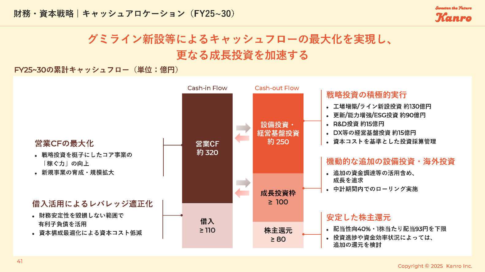 グミライン新設等によるキャッシュフローの最大化を実現し、更なる成長投資を加速する