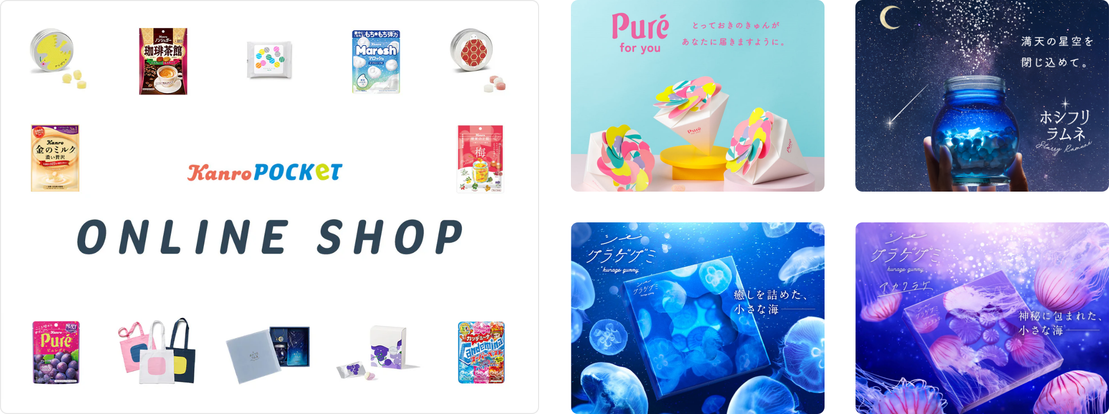 デジタル事業では、ECサイト「Kanro POCKeT(カンロポケット)」からDtoCビジネス(Direct to Consumer)の事業化を進めています。「ホシフリラムネ」や「シークラゲグミ」といったデジタル専売品の展開のほか、