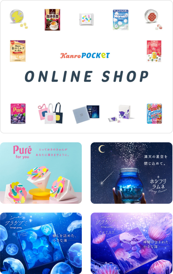 デジタル事業では、ECサイト「Kanro POCKeT(カンロポケット)」からDtoCビジネス(Direct to Consumer)の事業化を進めています。「ホシフリラムネ」や「シークラゲグミ」といったデジタル専売品の展開のほか、