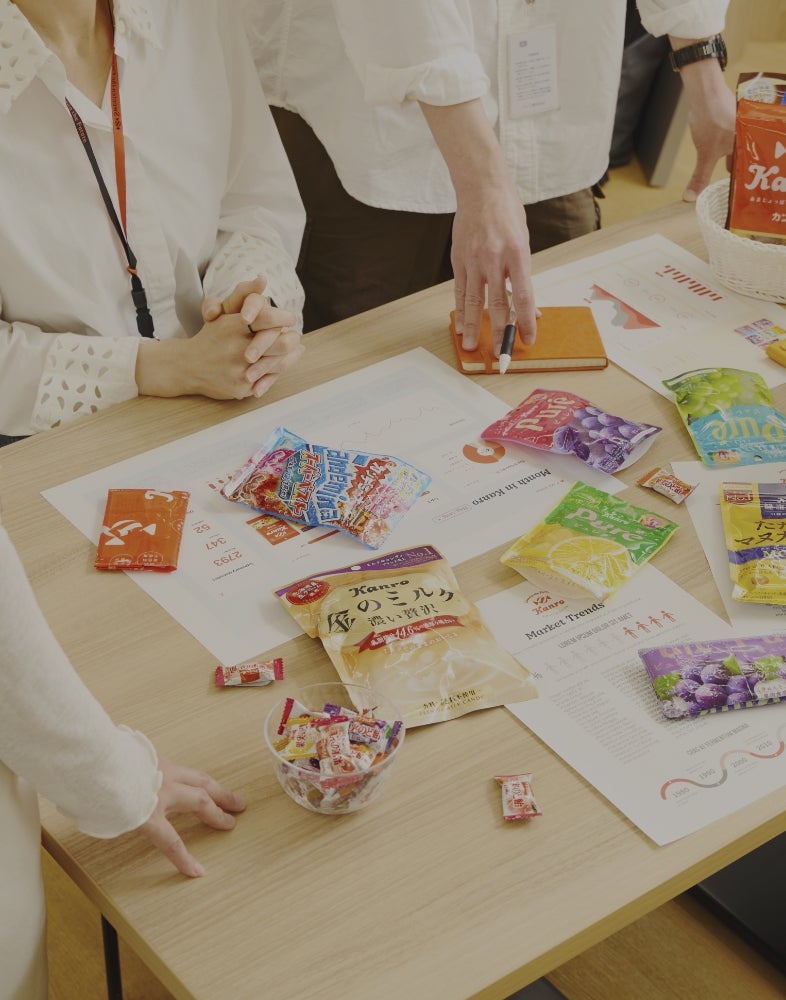 カンロは「素材を活かす」「キャンディならではの機能性」を開発方針に、飴やグミなど糖の機能を活かした商品の国内展開のほか、グローバル事業や直営店の運営、デジタル事業やフューチャーデザイン事業など、様々な領域に挑戦しています。