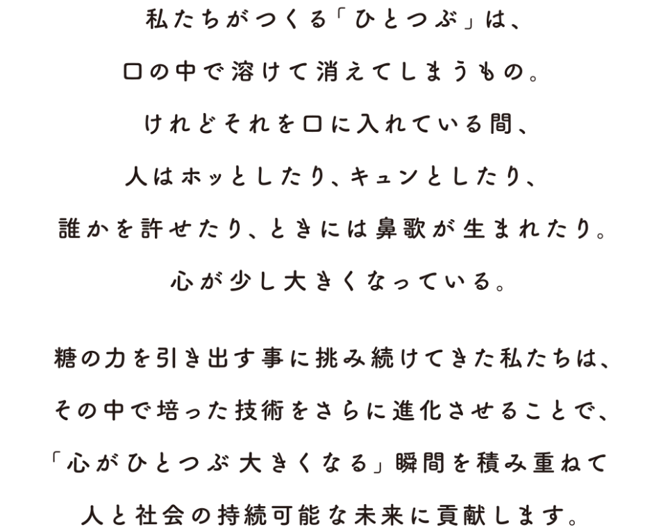 ブランドを育て糖の可能性を探求し、高い品質を守る、