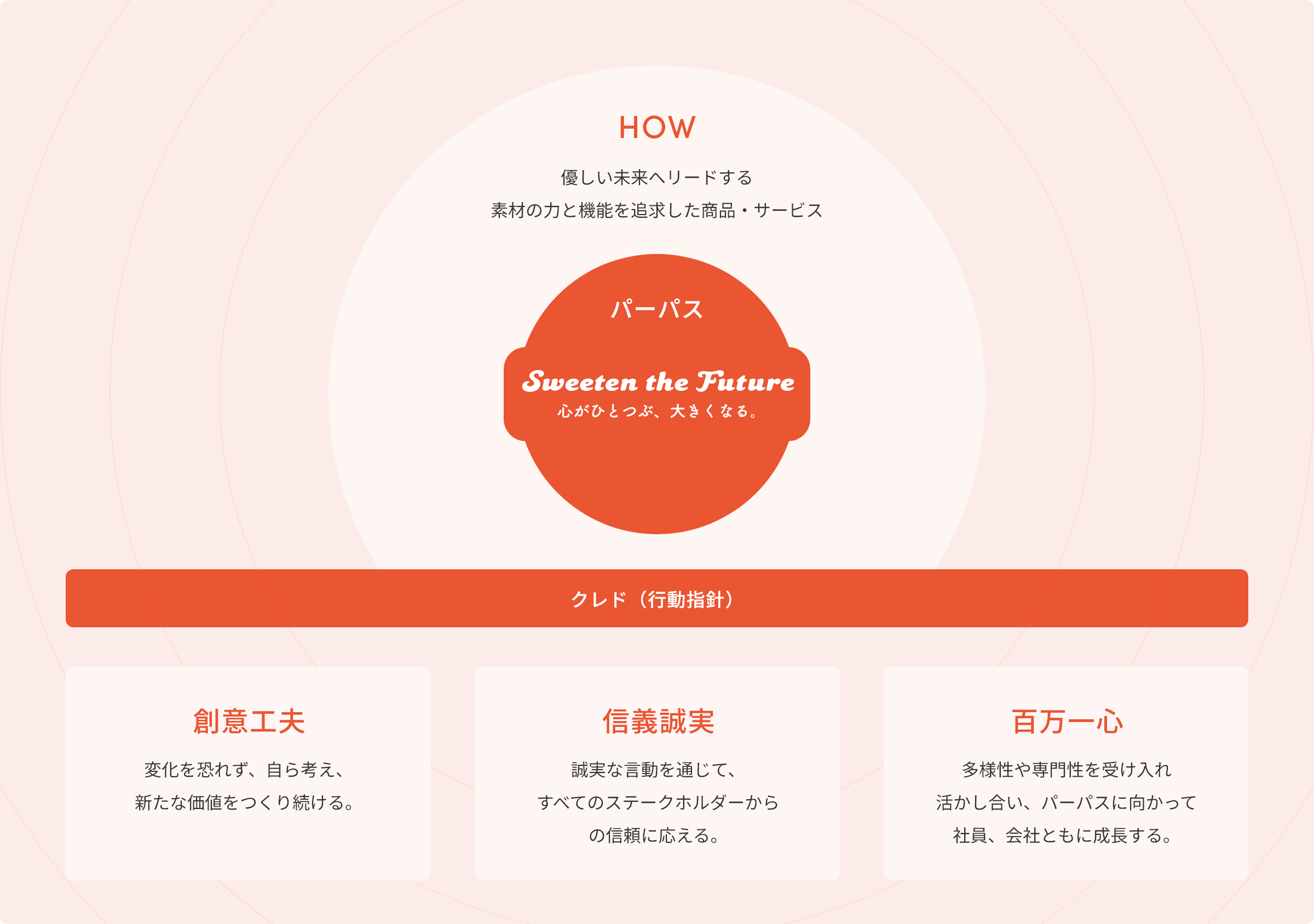 カンロは、変化する時代の中で会社の存在意義を示すため、未来への想いを言語化した「Sweeten the Future 心がひとつぶ、大きくなる。」を企業パーパスとして定めています。世界に羽ばたくキャンディメーカーになるために、パーパスドリブン経営でさらなる持続的な成長を目指しています。